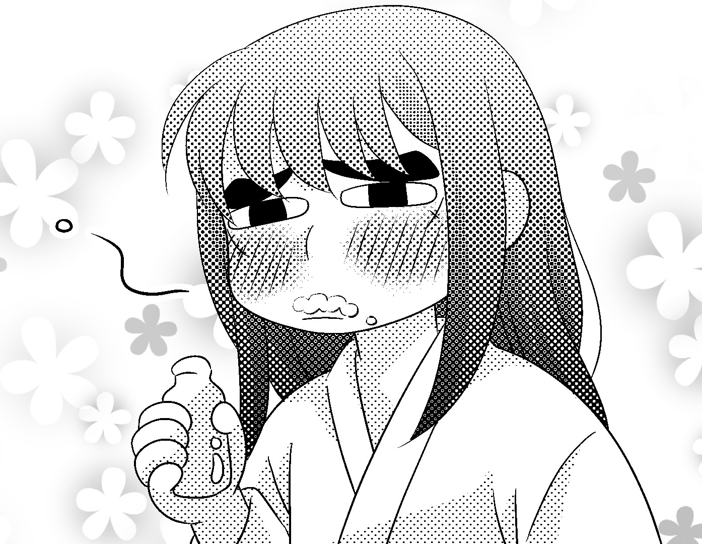 風呂上りにイチゴ牛乳飲んでご満悦な長次。